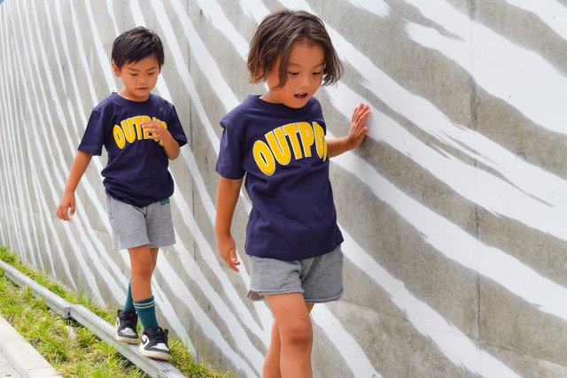【モデルデータ】 身長112cm 120サイズ着用 身長98cm 100サイズ着用 【商品説明】 フロントにOUTPUTのビッグロゴをプリント。 プリントはモコっとした立体プリントでどんなシーンでも着やすく写真映えするアイテムです。 大きめのビッグロゴプリントはおそろコーデ、親子コーデにインパクト間違いなし♪ これからの季節 海、山、川、フェスでも大活躍の1着です。 【サイズ 単位:㎝】 表記:90|100|110|120|130 着丈:36| 40| 44| 47| 51 身幅:29| 31| 33| 35| 37 肩幅:24| 28| 30| 32| 34 袖丈:11| 12| 13| 14| 15 【カラー】 ネイビー x イエロー 【素材】 綿100% セミコーマ糸 商品特徴:ダブルステッチ ●商品の色味、質感は写真と多少異なる場合があります。 ●何か気になる点がありましたら、お問い合わせフォームよりご連絡ください。